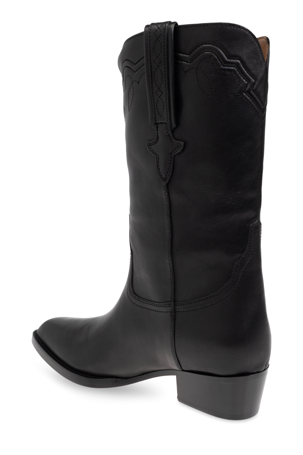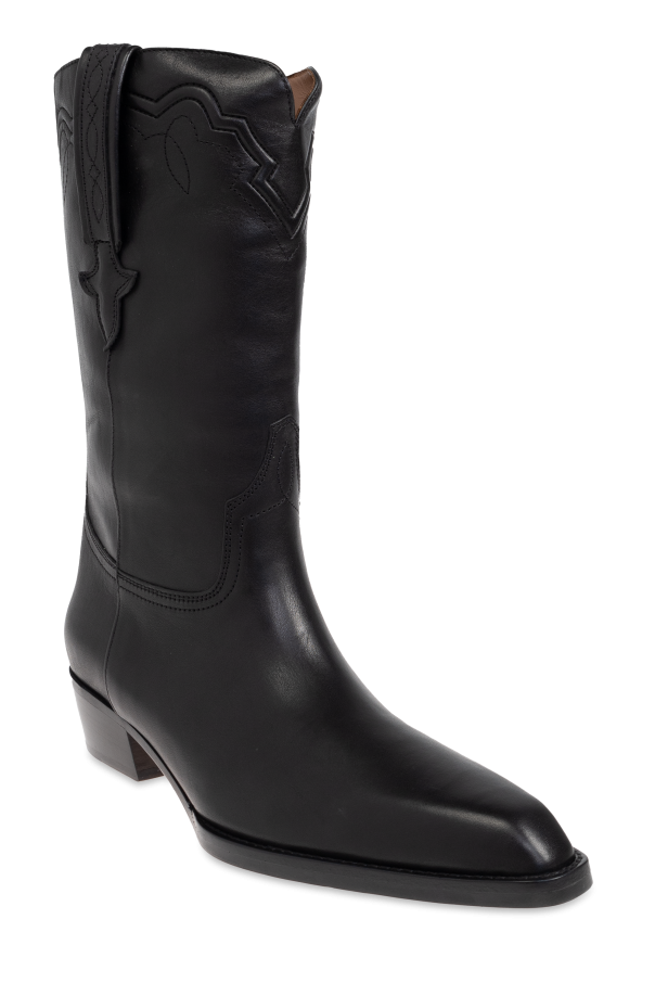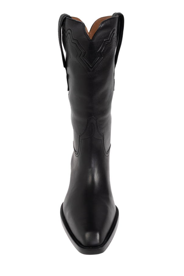 Presenting the exquisite Hilda leather cowboy boots, a testament to timeless elegance and classic western style. Designed by the esteemed Paris Texas, these knee-high boots boast a classic cowboy silhouette, enhanced by a low, stable heel for a touch of sophistication. Their rounded toe offers comfort without compromising on style. Crafted from premium black leather, the Hilda boots exude exclusivity and unparalleled quality. The upper shaft is adorned with intricate stitching and subtle embossments, infusing each pair with unique character and charm. Their dominant black hue ensures versatility, making them a seamless addition to any ensemble. Why Choose This Product? Elegant yet classic cowboy design High-quality black leather for a luxurious feel Intricate stitching and subtle embossments for unique detailing Comfortable low heel for everyday wear Versatile color perfect for any outfit