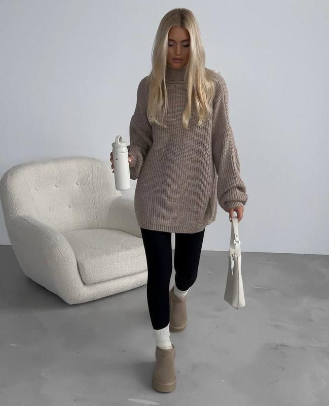 Ангоровый вязаный свитер оверсайз с высокой горловиной.