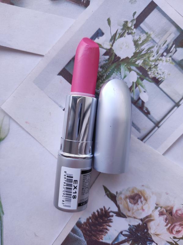 На фото відтінок виходить яскравіший, ніж є насправді. У дійсності спокійний насичений рожевий, не блідий.3. Рожева помада з легким перламутром Isabelle Dupont EX18