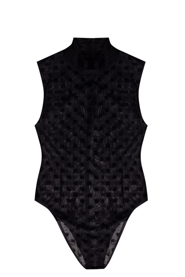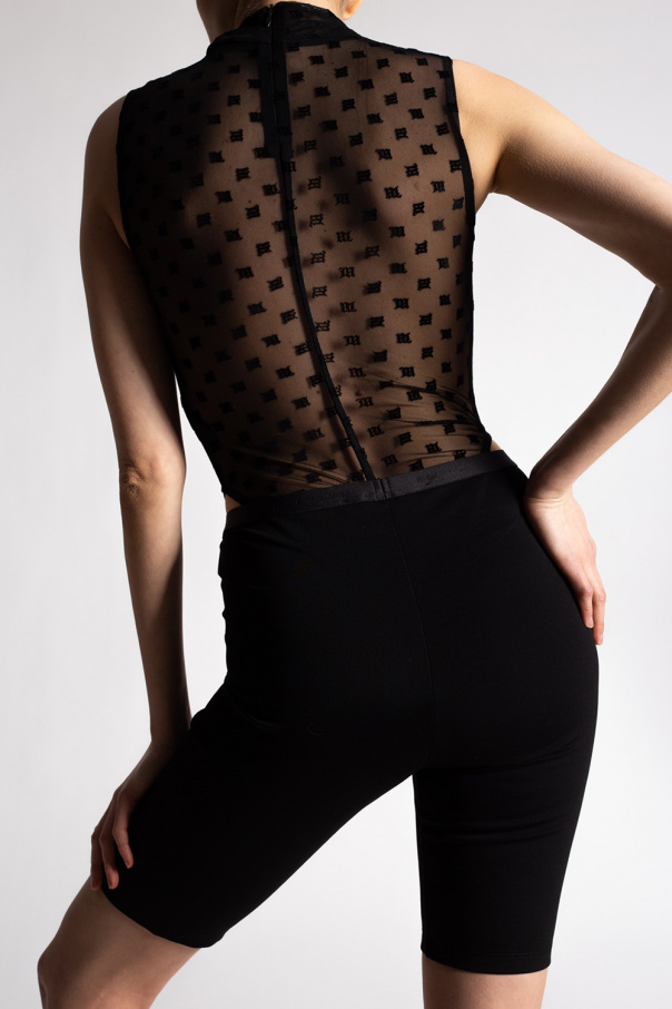 Black ‘Monogram Mesh’ sleeveless body from MISBHV. Fastened with a zip and snaps, this design features a decorative high neck and ‘M’ monogram.