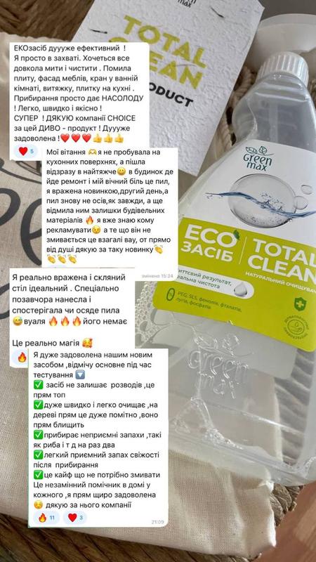 Екозасіб для очищення поверхонь Total Clean (не потребує змивання)Стан: НовийКолір:- Білий
