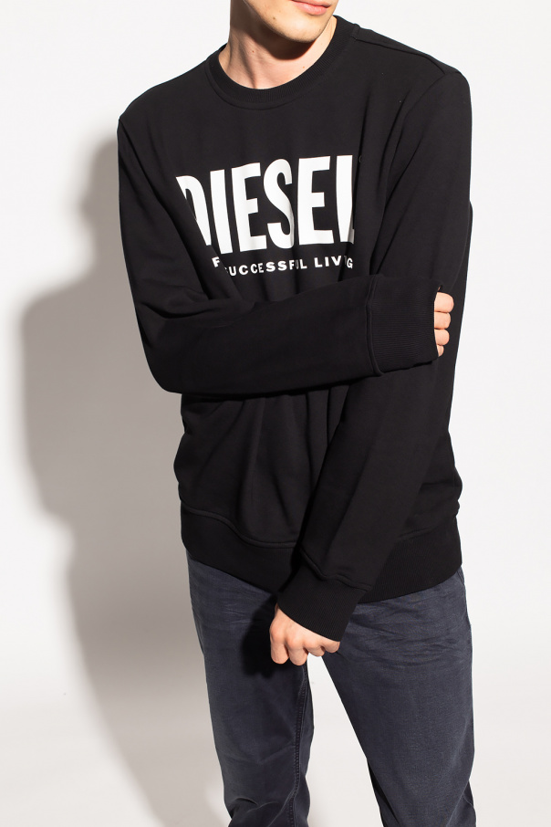 Black sweatshirt from Diesel. Made of cotton, it has a white logo print as well as ribbed trims at the neck, hem and cuffs. This product is environmentally friendly.