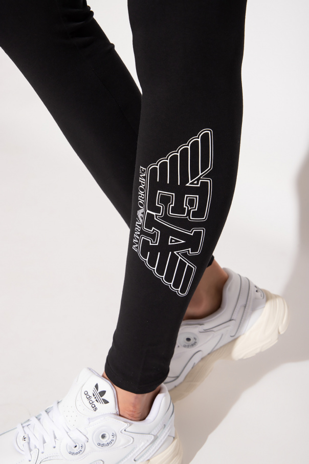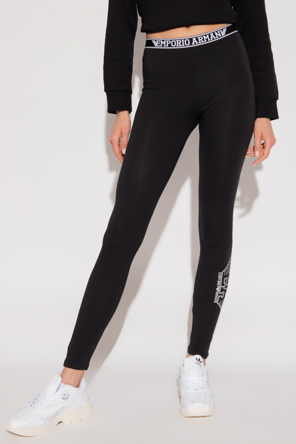 Black leggings from Emporio Armani, the ‘Underwear’ collection. Made of cotton, this pair features an elastic waistband and white logo.