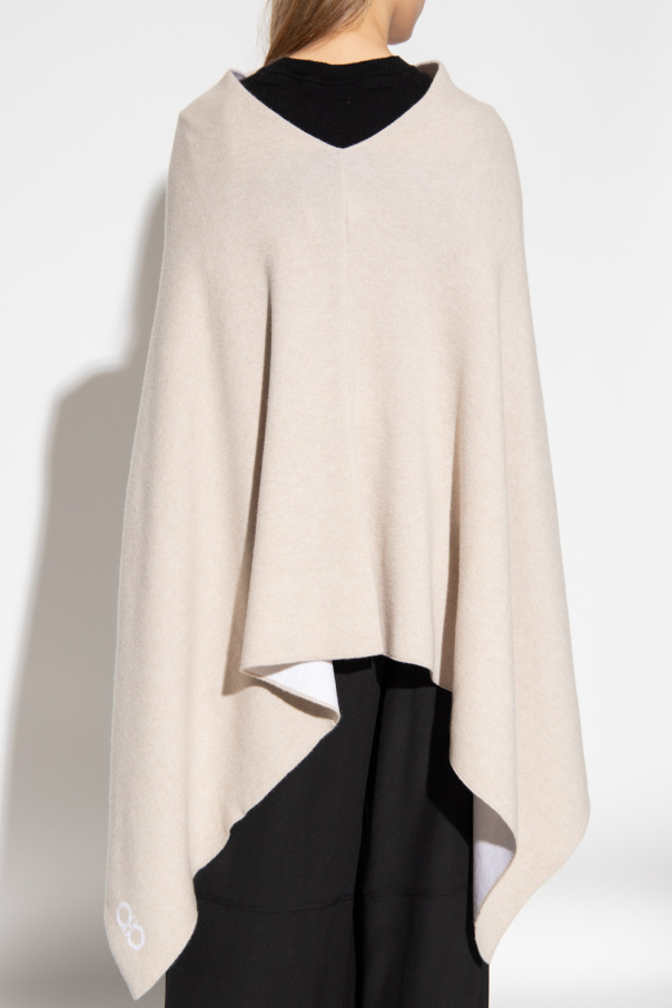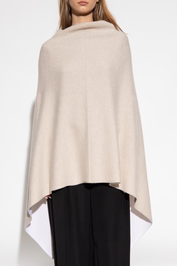Beige poncho from FERRAGAMO. Crafted from cashmere, this style features an asymmetrical silhouette with a contrasting cream interior and logo embroidery.
