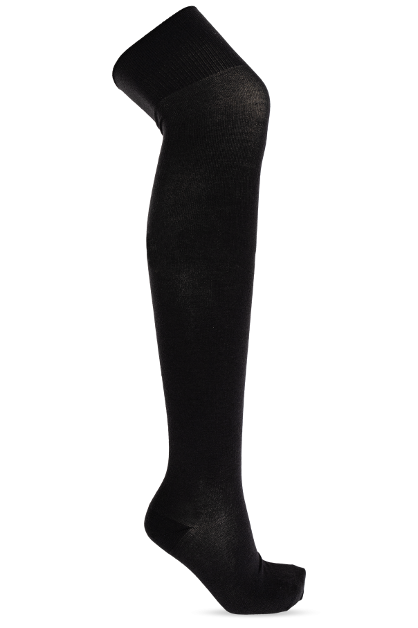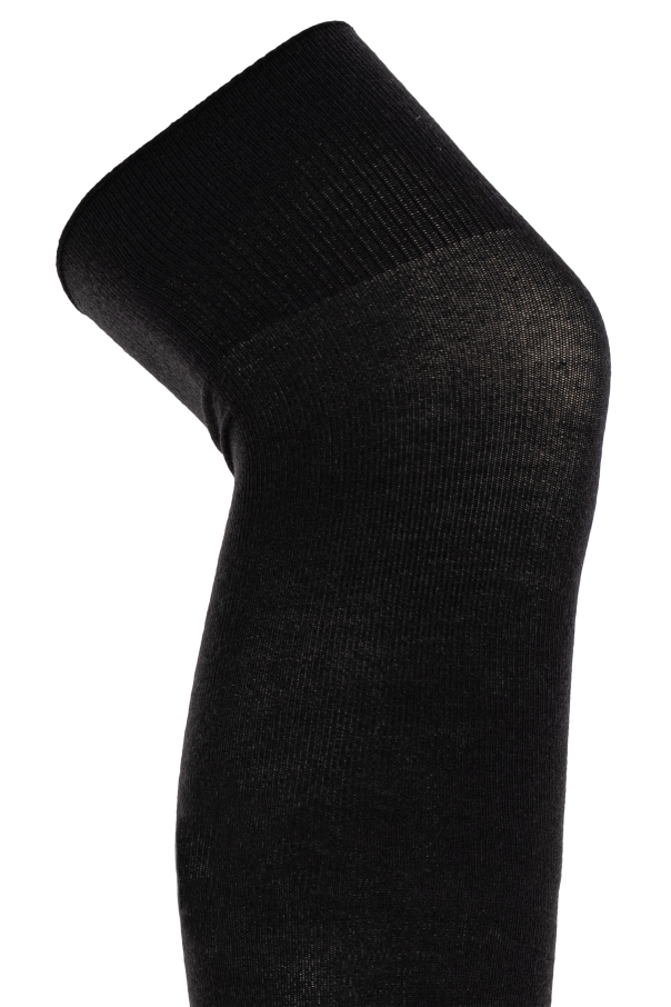 Introducing an exquisite creation by the renowned fashion house, Lemaire. These black woolen tights embody pure elegance and sophistication, crafted from the finest materials. Material: Made from smooth, seamless wool, these tights exude a timeless, classic allure. The delicate blend ensures durability and a luxurious feel against the skin. Design and Shape: Featuring a minimalist design, these tights extend gracefully above the knees, offering both warmth and style. The simplicity of the pattern enhances their versatile nature, making them a staple in any wardrobe. Details: Upper Section: The wide, ribbed waistband ensures a secure and comfortable fit, maintaining the tights\' position throughout the day. Foot Area: A subtle seam line at the heel showcases meticulous craftsmanship, adding durability to this often-stressed area. These tights belong to the WOMEN, CLOTHING, UNDERWEAR/SOCKS category, perfectly aligning with Lemaire\'s dedication to minimalist yet impactful fashion. The universal black hue ensures easy pairing with a multitude of outfits, epitomizing versatility and elegance. Why Choose This Product? Luxurious wool blend for a soft, comfortable feel. Minimalist design that complements any wardrobe. Durable construction with a focus on longevity. Wide, ribbed waistband for a perfect fit. Subtle heel seam for added strength and craftsmanship.