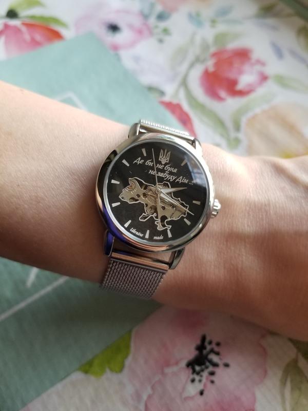 Женские механические часы с картой Украины, тризубом и надписью "де би не була, не забуду дім".