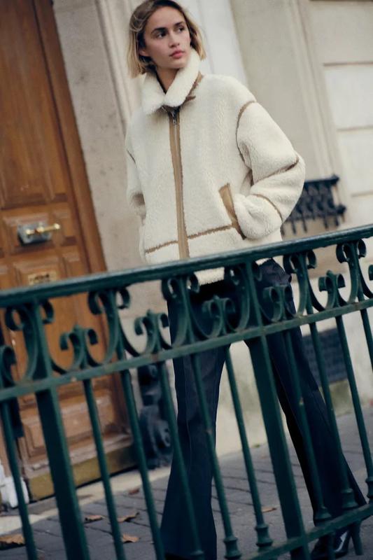 Куртка с окантовкой, рубашечным воротником и длинными рукавами. Карманы с обшивкой спереди. Застегивается на молнию спереди. Хлястик на воротнике и контрастная подкладка.