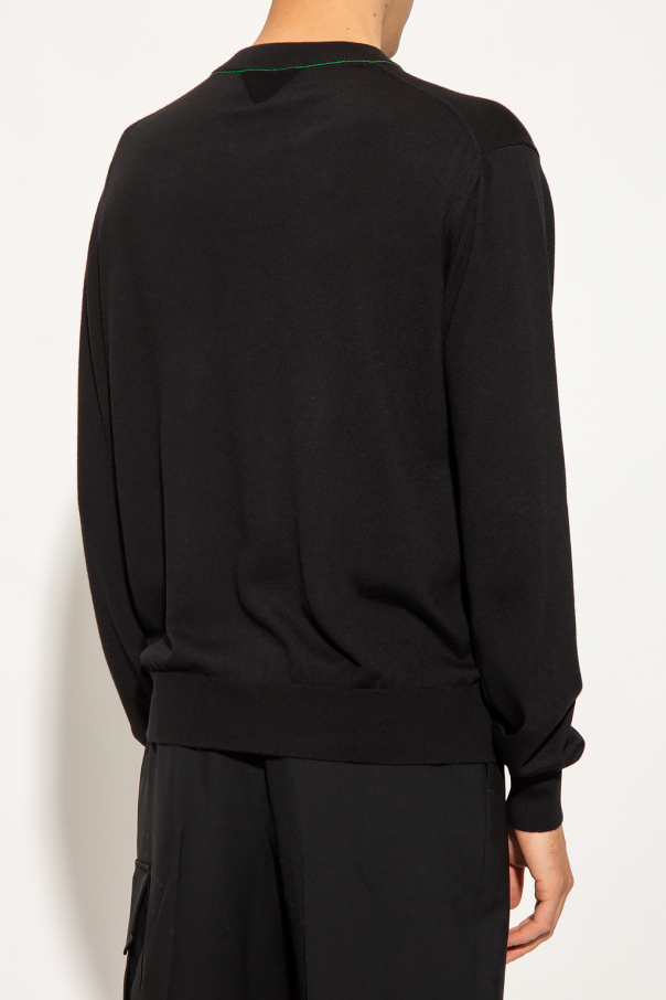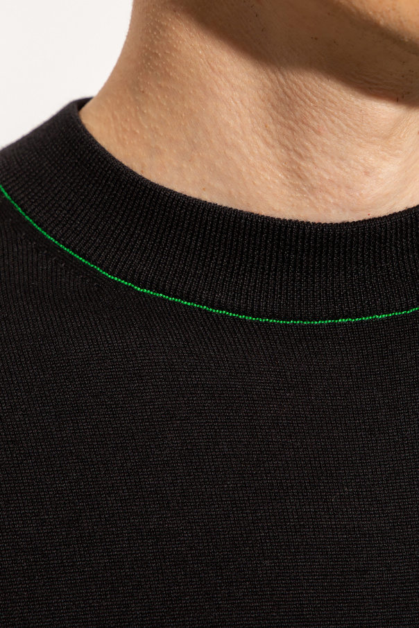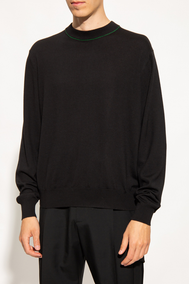 Black crewneck sweater from Bottega Veneta. Made from merino wool, this style features a classic fit, long sleeves and ribbed trims on the collar, bottom hem and cuffs.