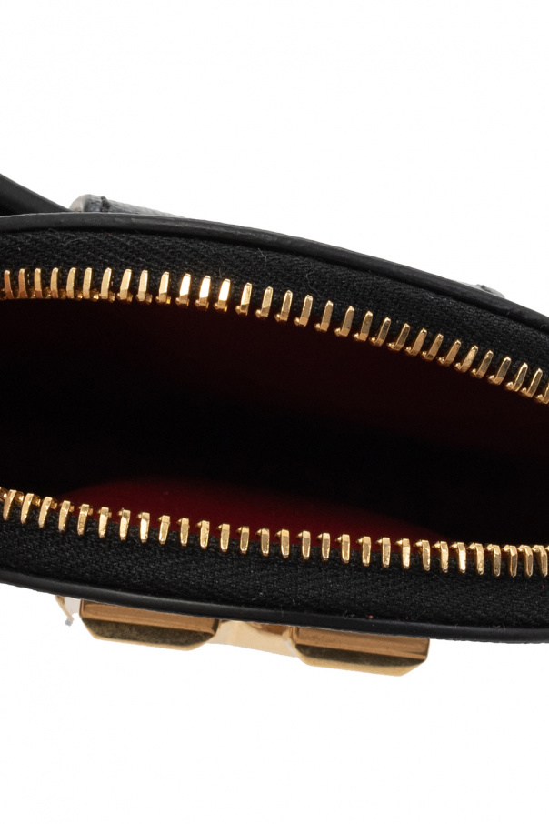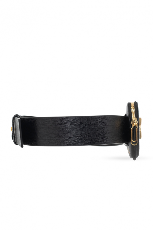 Black pouch from Off-White. Crafted from leather, this design features a zip fastening, metal logo appliqué, adjustable strap, one internal compartment and gold-tone metal hardware. The pouch can be worn separately.