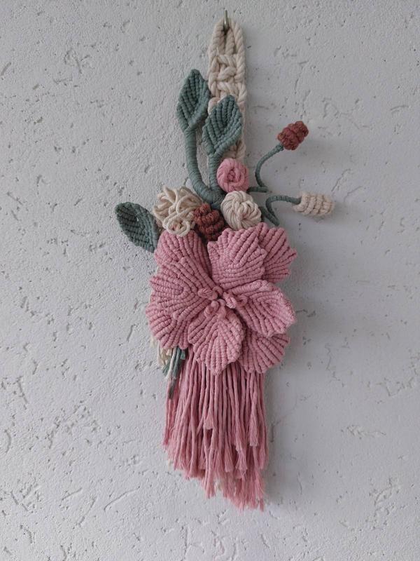 Настенное панно с цветами макраме в стиле бохо – оригинальный дизайнерский прием, с помощью которого можно обновить интерьер без дорогого ремонта. Такой эстетический декор будет уместен не только в гостиной, но и украсит декором стену спальни над кроватью или обеденной зоной на кухне, детскую, стены загородного дома, ведь цветы обязательно принесут гармонию природы, достаток и удачи.
