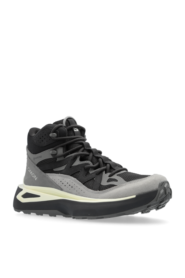 Introducing the \'ODYSSEY ELMT MID GTX\' by Salomon, a seamless amalgamation of rugged durability and sleek aesthetics. Crafted with a discerning eye for both form and functionality, these sporty yet stylish shoes are a testament to Salomon\'s commitment to excellence. The dominant shades of gray and black, punctuated by creamy accents, create a visually striking contrast that is both eye-catching and sophisticated. The mid-profile design not only adds a contemporary flair but also offers enhanced ankle support, making them ideal for both outdoor adventures and daily wear. The upper is ingeniously constructed from a blend of leather, synthetic materials, and fabric, ensuring not only resilience and longevity but also optimal breathability, thanks to the strategically placed perforations. Reinforcements at the toe and heel areas are a thoughtful addition, providing protection and stability on varied terrains. The aggressive tread on the rubber sole promises unmatched traction, making these shoes truly terrain-ready. Salomon\'s signature logo and the \'ODYSSEY ELMT\' inscription on the rear of the shoe serve as hallmarks of quality and authenticity, underscoring the distinctive identity of this exceptional footwear. Why Purchase This Product? Expertly crafted with high-quality materials for durability and comfort. Mid-profile design offers additional ankle support without sacrificing style. Versatile aesthetics make them suitable for both outdoor activities and everyday use. Enhanced breathability and protection features ensure foot health and comfort. Aggressively designed sole provides superior traction on various surfaces.