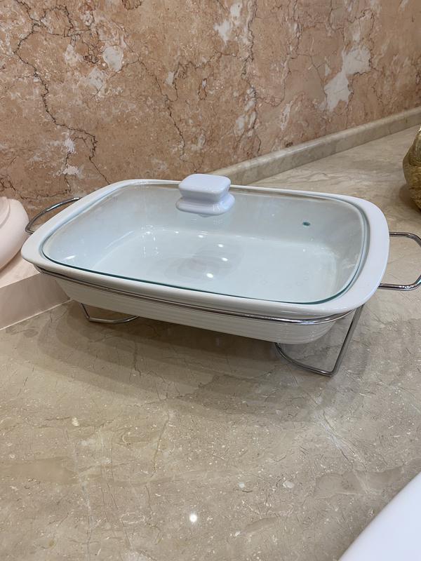 Керамический мармит Kamille — прекрасное приспособление для подачи горячих вторых блюд. Он изготовлен из высококачественных материалов с применением современных технологий производства. Керамическая форма с крышкой подходит для использования в духовых и микроволновых печах, а в комплекте с ней идет удобная металлическая подставка с подсвечником для подогрева блюд. Такой керамический мармит с подставкой имеет привлекательный внешний вид и очень удобный в использовании, благодаря чему он непременно украсит Ваш праздничный стол.