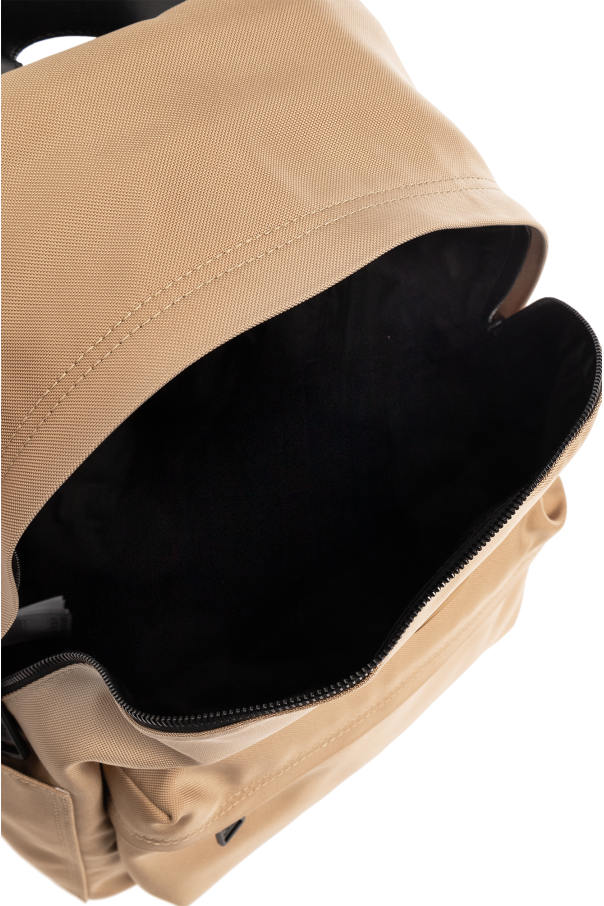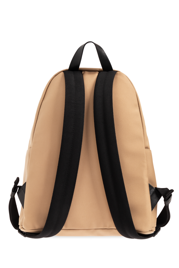 Beige ‘New Pierrick’ backpack from Moncler. Enriched by a logo patch on the front, this design features a two-way zip fastening, one zip pocket, two slip pockets, one half-round handle, adjustable shoulder straps, black metal hardware and one internal compartment with one slip pocket.
