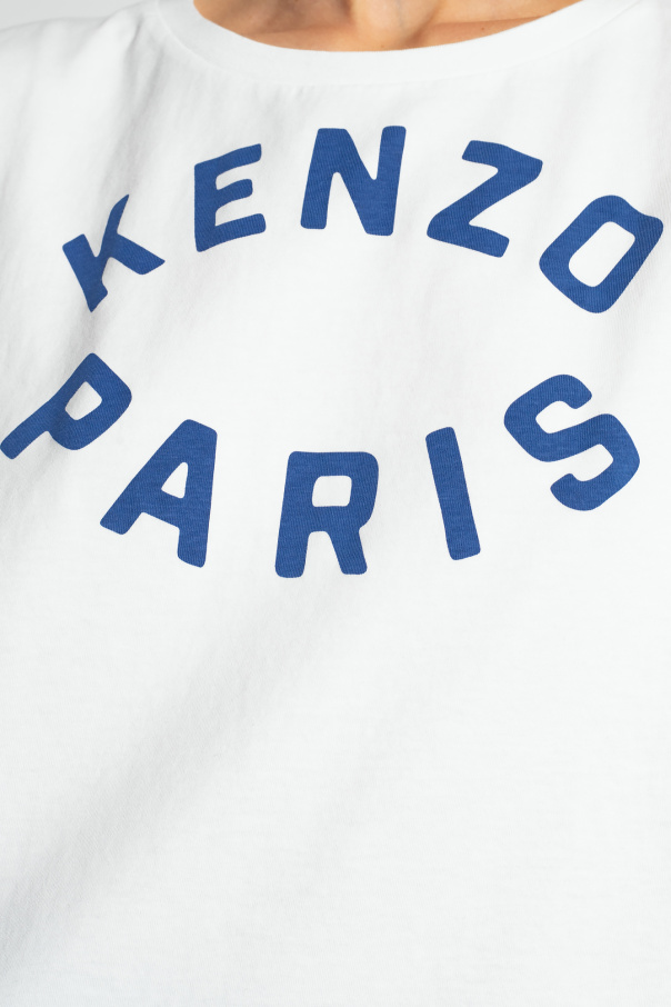 White loose-fitting crewneck T-shirt from Kenzo. Made from cotton, this short sleeve design is decorated with a multicolored print and a logo.