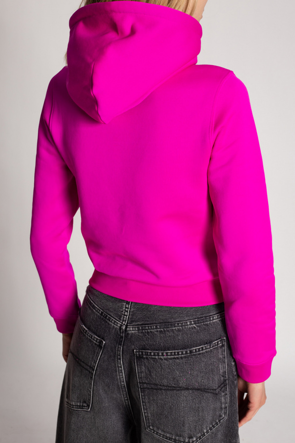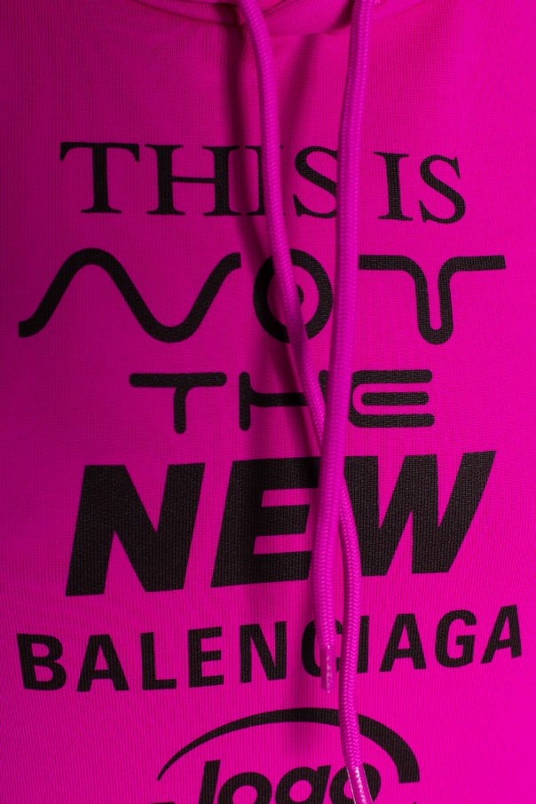 Dark pink sweatshirt with a drawcord-adjustable hood from Balenciaga. Crafted from cotton jersey, this hoodie features a black graphic print with the brand\'s logo, a kangaroo pocket and ribbed trims on the edges.