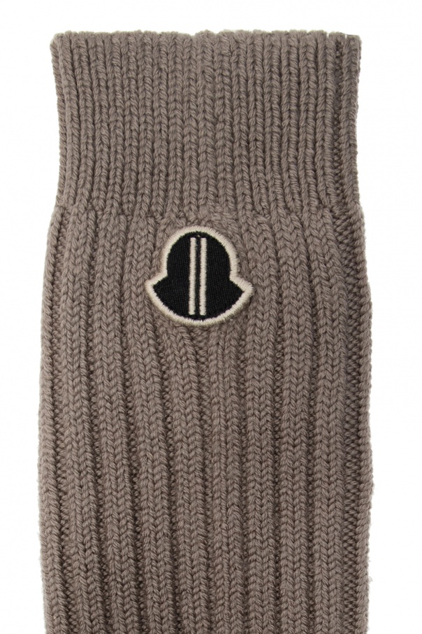 Grey ribbed leg warmers from Rick Owens x Moncler. Crafted from wool, this design features a sewn-on logo detail.
