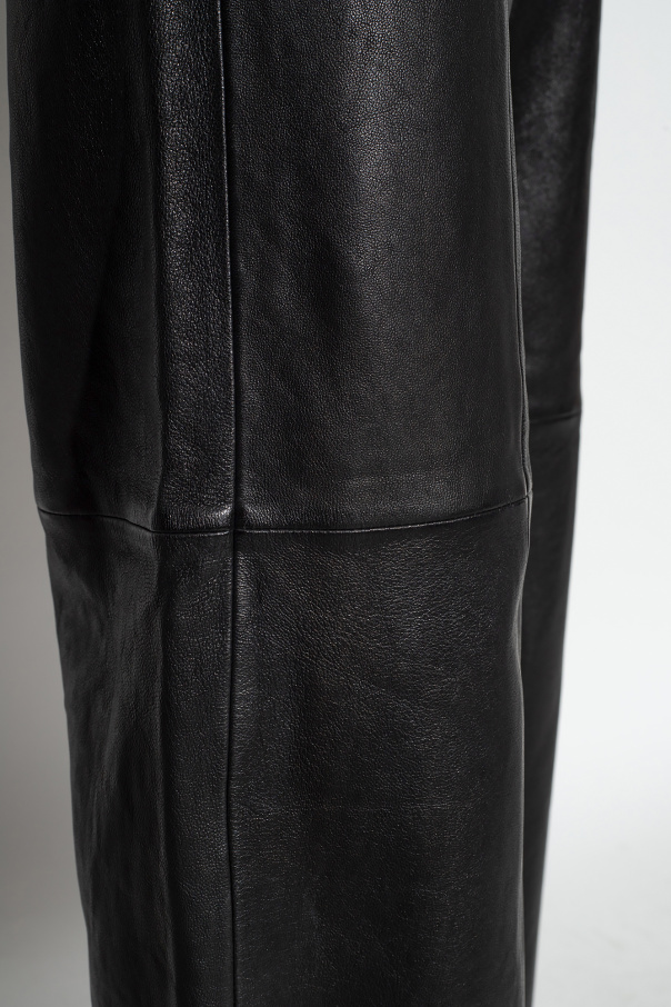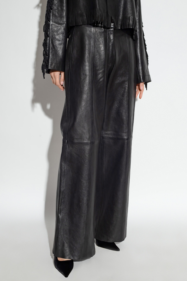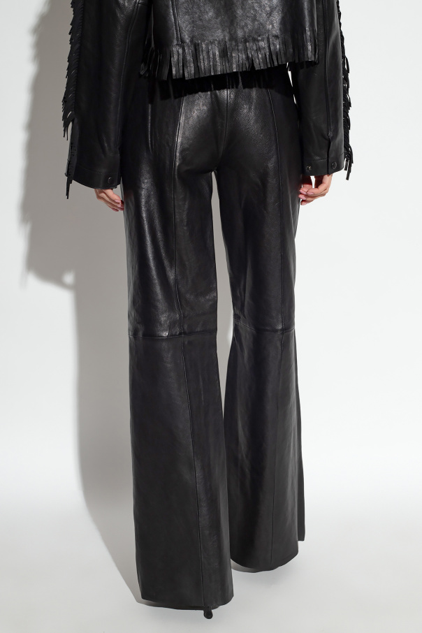 Black trousers from Forte Forte. Made of leather with a high-rise waist, this pair falls with flared legs and features a zip fly with a hook & eye closure and an elasticated waistband.