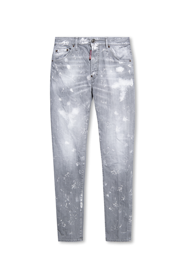 Grey ‘Cool Guy’ jeans from Dsquared2. Made of cotton, this pair falls with tapered legs and features button fastenings, classic five pockets, paint splatters and distressed detailing.