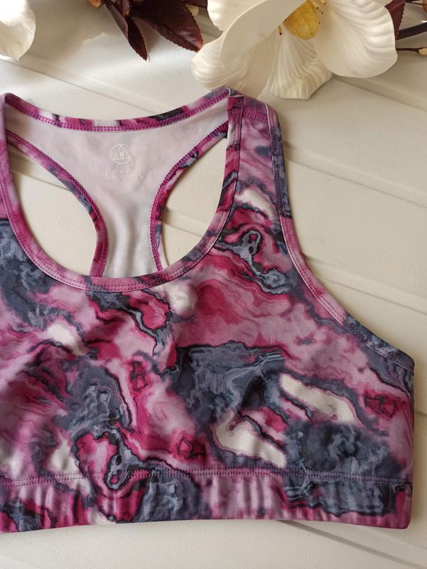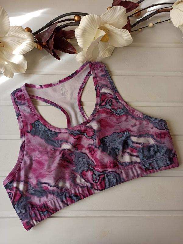 Классый спортивный топ интересной расцветки. Впереди подкладка, на ощупь похожа на неопрен)