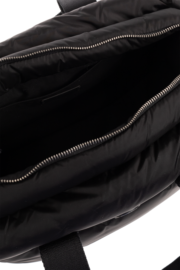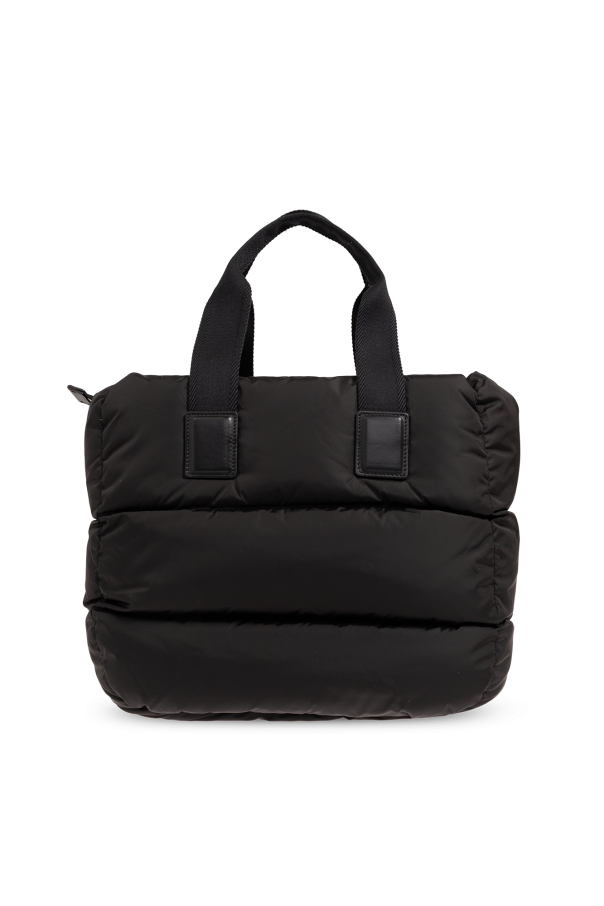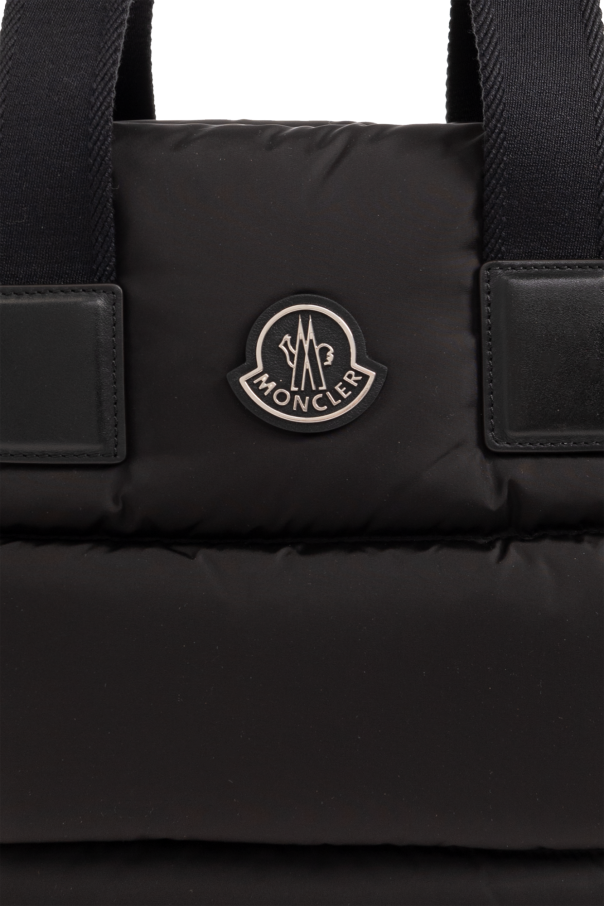 Black ‘Caradoc’ quilted shopper bag from Moncler. Emblazoned with a logo-shaped patch on the front, this design features a zip fastening, two half-round handles, silver-tone metal hardware and one internal compartment with a slip pocket.