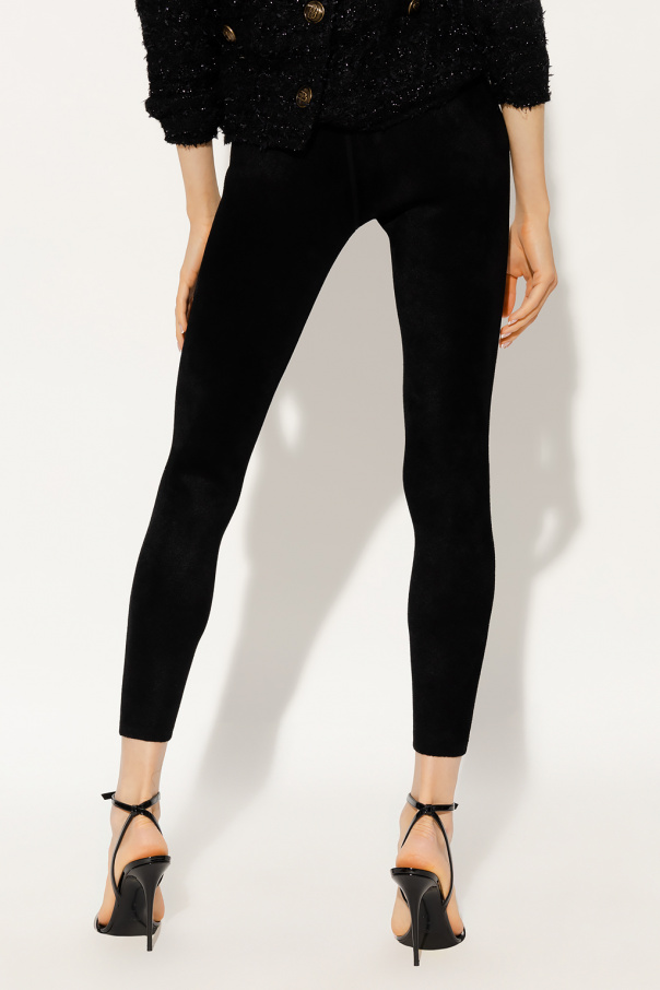 Black leggings from Alaia. Made in a wool-blend velour fabric, this style features an elasticated waistband and cropped legs.