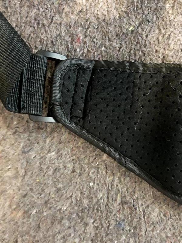 Небольшая, компактная нательная сумка . Фиксируется с помощью карабинов и регулируется по ширине. Имеет два кармана. Больший карман 17Х8,5 см, меньший - 17Х6,5 см. Состояние идеальное.