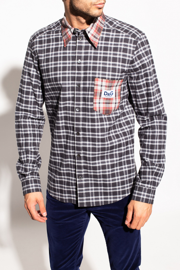 Multicoloured shirt from Dolce & Gabbana. Crafted from checked cotton fabric, this style fastens via buttons and features a slip chest pocket accompanied by a logo patch and long sleeves with button cuffs.