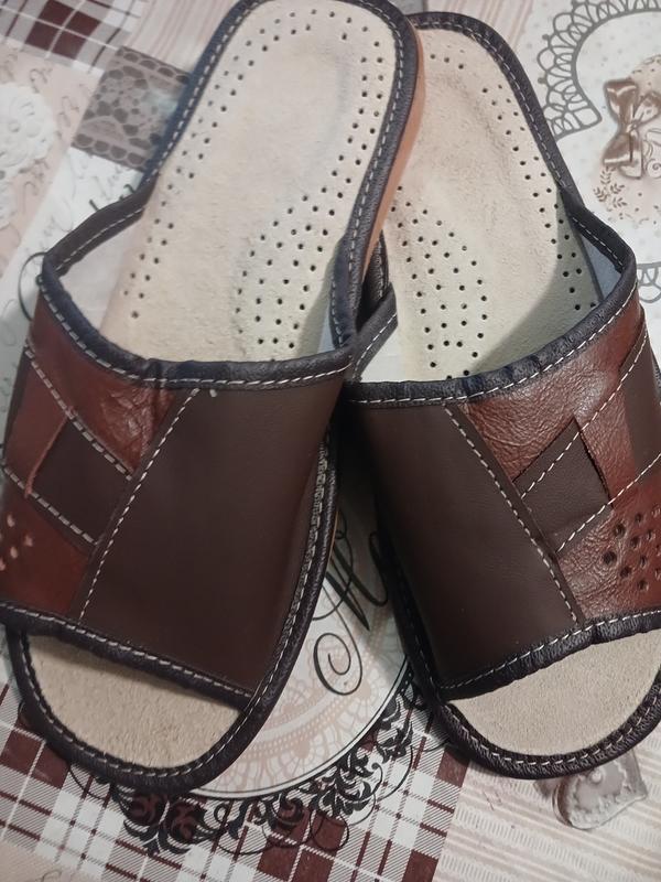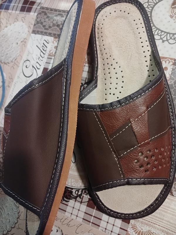 Тапочки мужские кожаные с натуральной дышащей стелькой. Обувь открытая ,