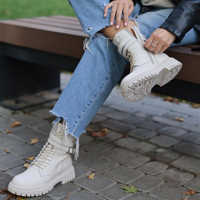Стильные ботинки,берцы,берцы женские на шнуровке кожаные бежевые осенние,весенние (осень-весна 2022-2023)
