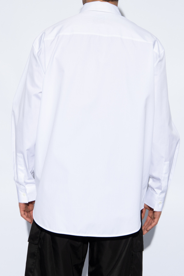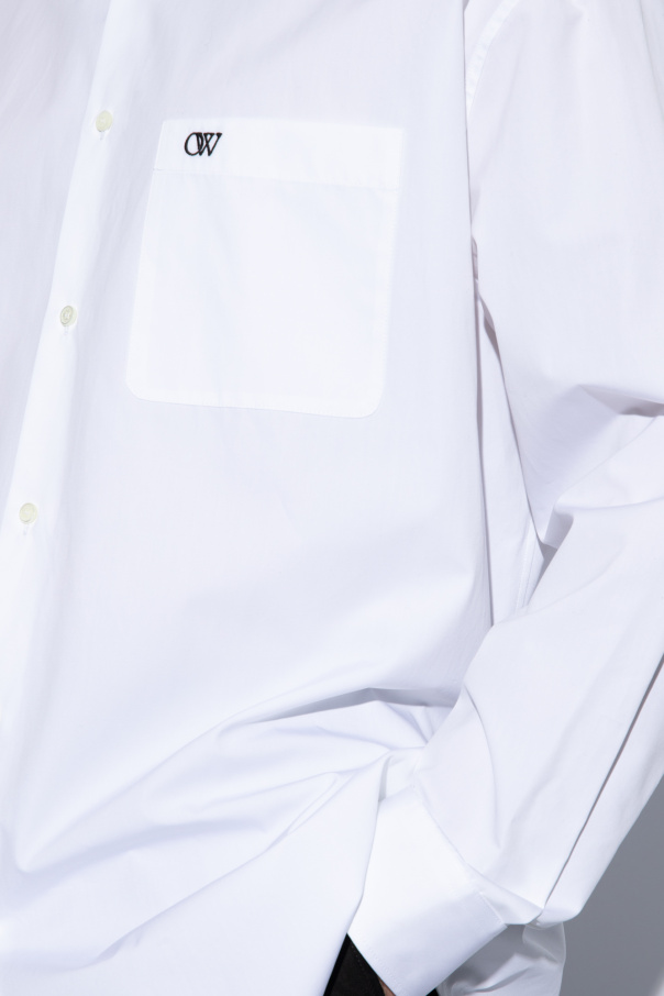 White shirt from Off-White. Made of cotton, this garment features a black logo embroidery, slip pocket and long sleeves with buttoned cuffs.