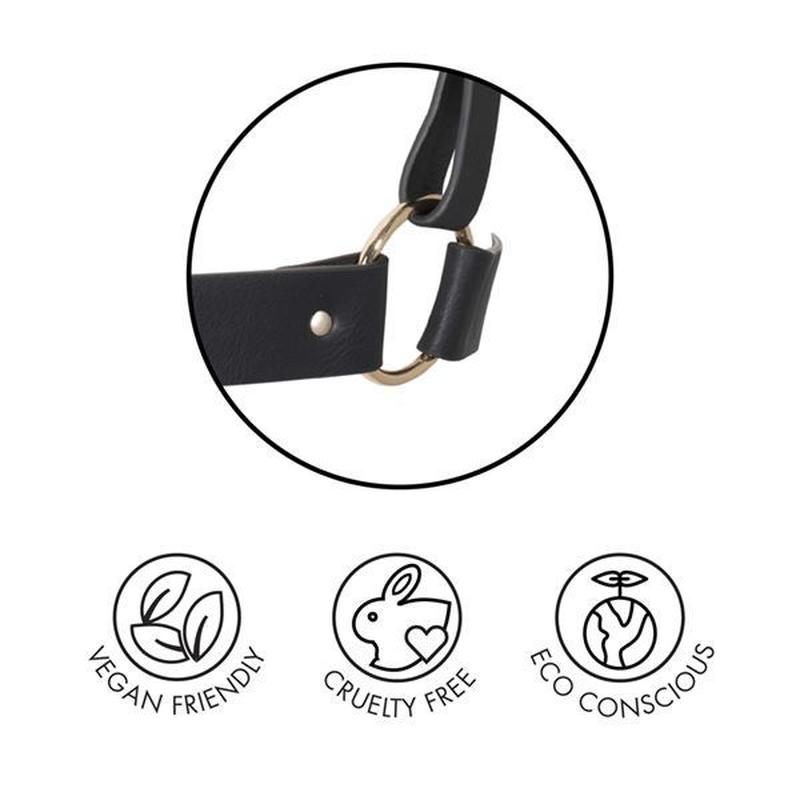 Чокер та повідець стилізовані під шкіру та з'єднані золотавим ланцюжком. Повідець приєднується до кільця на чокері за допомогою карабіна, так що чокер може використовуватися і просто як провокаційна прикраса, і для ігор з повідцем. М'який матеріал не натирає шию, причому всі деталі досить міцні. Чокер регулюється за обсягом та надійно застібається на два кріплення.