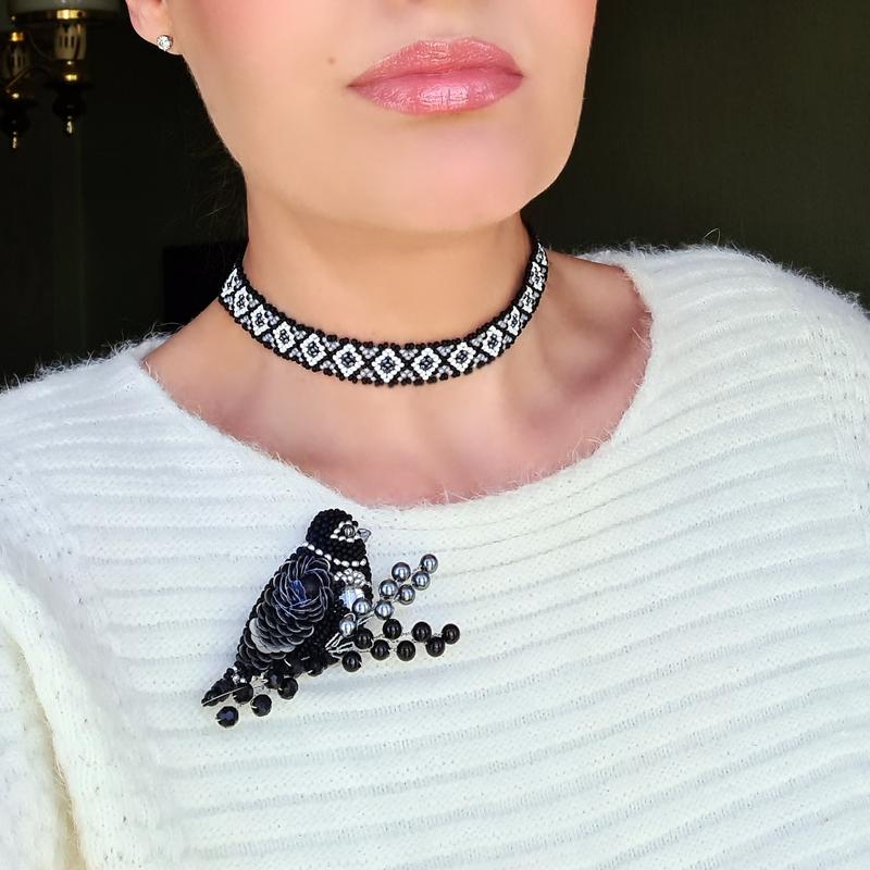 На Тернопільщині вишиванки з чорним малюнком стали символом регіону - це знаменита Борщівська вишивка. Стічковий гердан відновлено з любов’ю за схемою з книги Литвинець «Чарівні визерунки». Ширина 1,5 см, довжина 33-41 см, вага 15 г. Матеріали: чеський бісер PreciosaСостояние: НовоеЦвет:- Чёрный