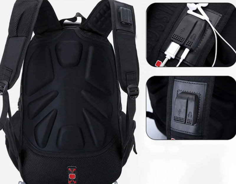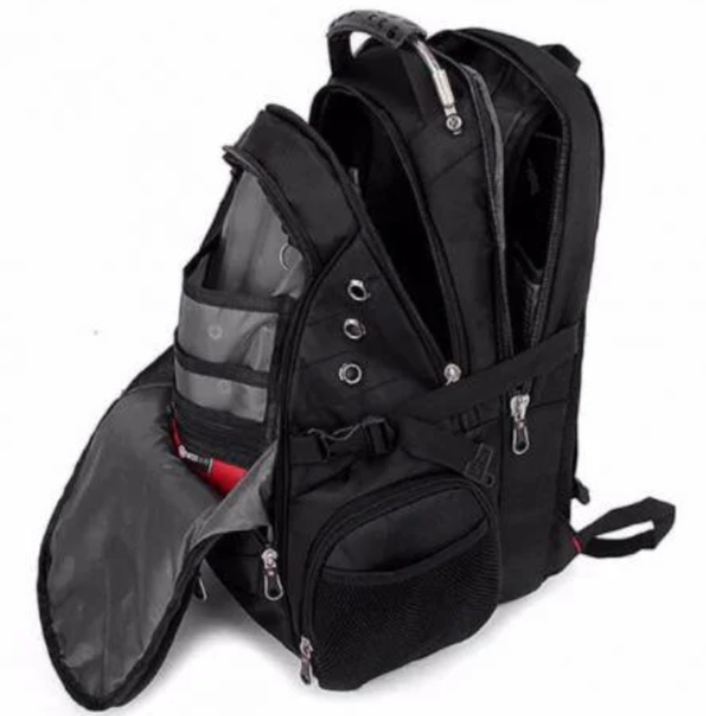 Данная модель идеально подходит как для туризма активного отдыха так и для городских условий и также очень хороший выбор для школьников у данной модели хорошая твёрдая ортопедическая спинка . Эта модель оснащена специальными аудио удлинителями и USB, что позволяет оставить ваш телефон и Power Bank в кармане рюкзака. В рюкзаке Swiss Bag имеются отделение-органайзер и отделение для ноутбука,которое позволяет сохранно переносить компьютер диагональю до 15.6 дюймов. Материал из которого изготовлен рюкзак (полиэстер+нейлон) обладает износостойкими характеристиками и не боится влаги. Ручка для переноски усилена стальным тросом для большей надёжности. Дышащая ортопедическая спинка с системой вентиляции “Airflow” – система комфорта спины Airflow обеспечивает циркуляцию воздуха для максимального удобства. Максимальный объем вещей, которые можно поместить примерно 40 литров.