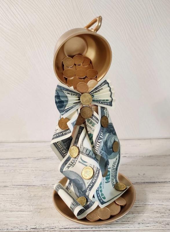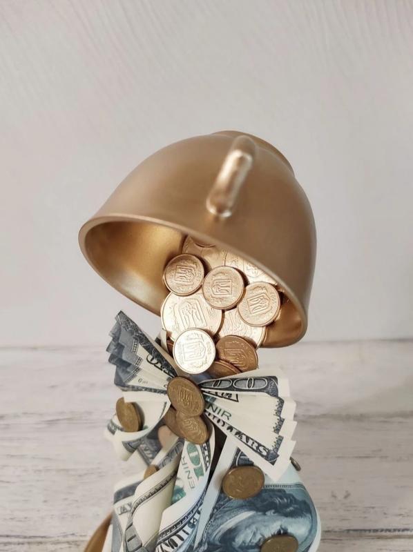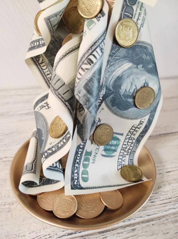 Материалы: Натуральный фаянс, монеты Украины, сувенирные доллары, гипоаллергенный клей, золотое напыление.
