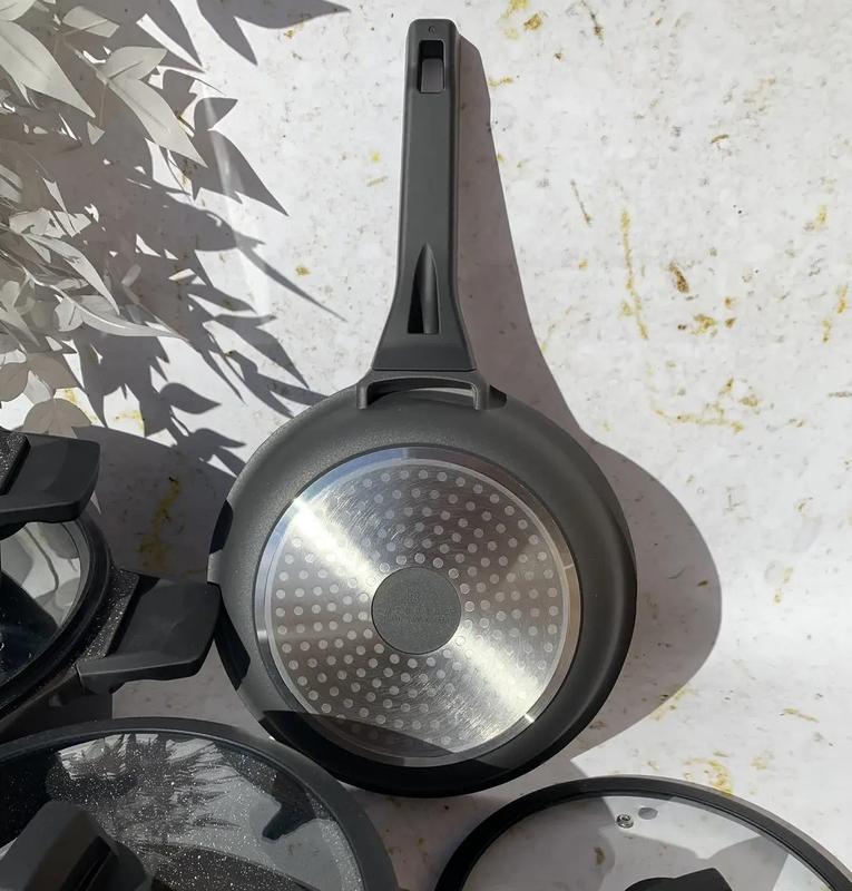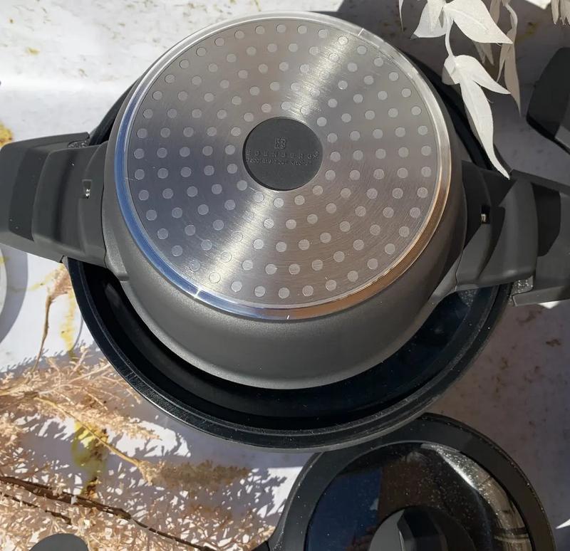 Весь посуд має тришарове Гранітне антипригарне покриття не містить шкідливих