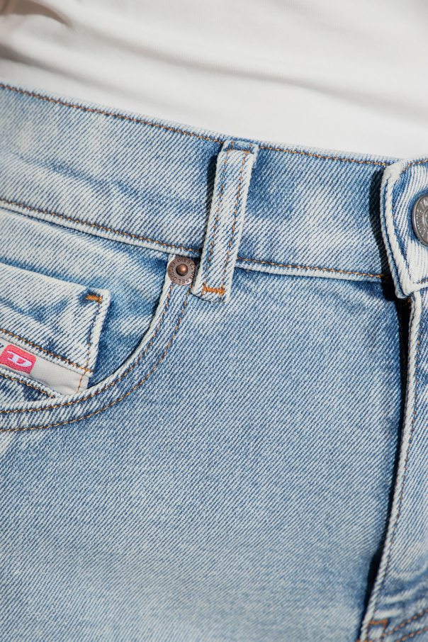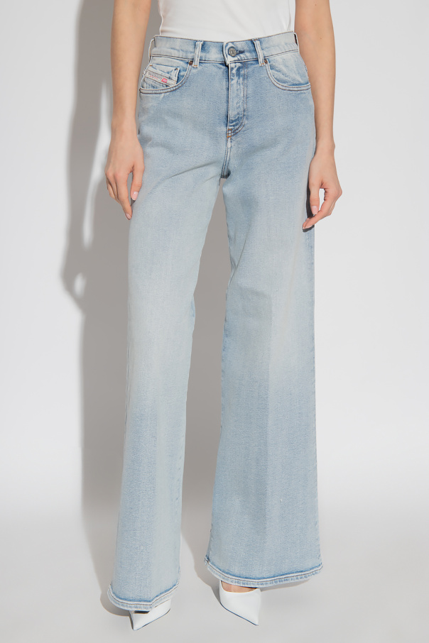 Light blue '1978 L.32' jeans from Diesel. Falling with flared legs, this pair features a zip fly with a button, classic five pockets, rolled cuffs and logo patches on the front and back.