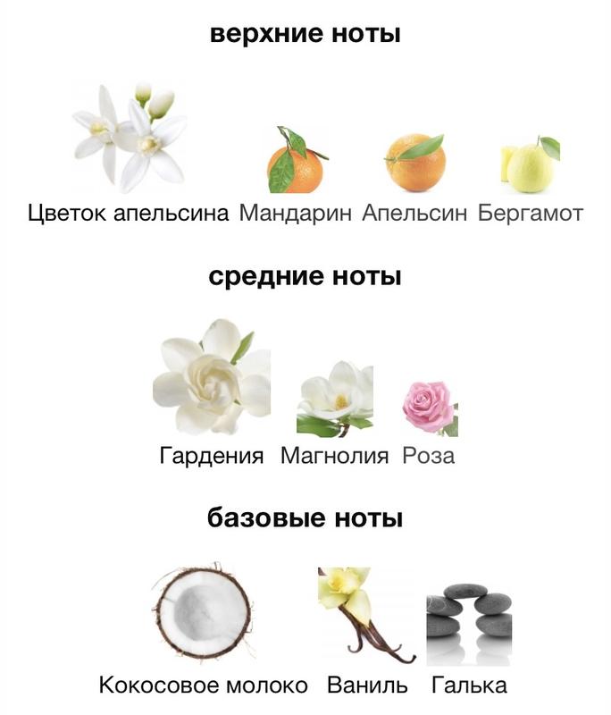 ✅ Конечная нота: Ваниль, Галька, Кокосовое молоко.