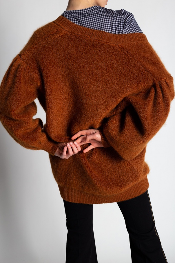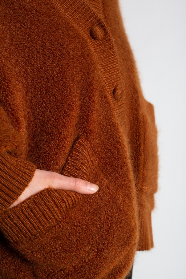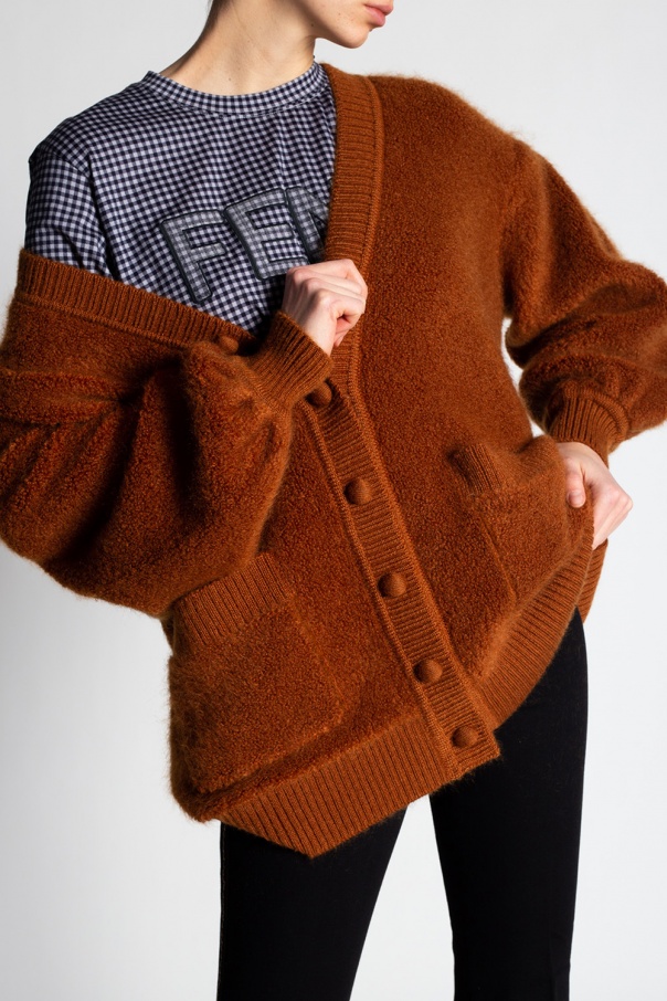 Brown cardigan from Fendi. Fastened with buttons, this garment features a V-neck, long sleeves and two front slip pockets.