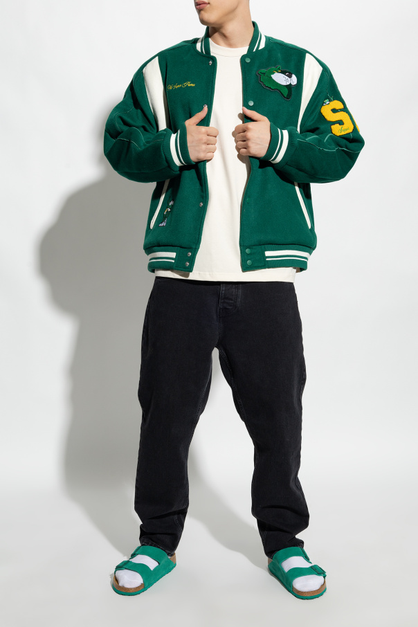 Green ‘Arizona BS’ slides from Birkenstock. Made of suede, this pair features a tapered upper, adjustable buckle straps, embossed logo on the side, anatomically shaped cork-latex footbed and green EVA sole.