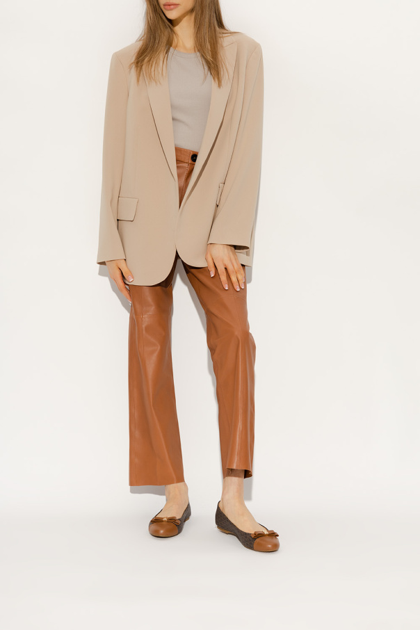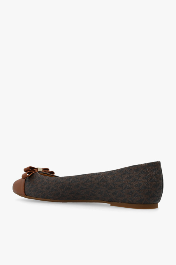 Brown ballet flats from Michael Michael Kors. Made of canvas, this pair features a bow, monogram and brown rubber sole.