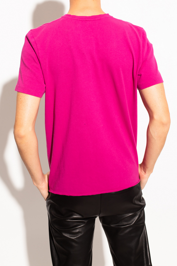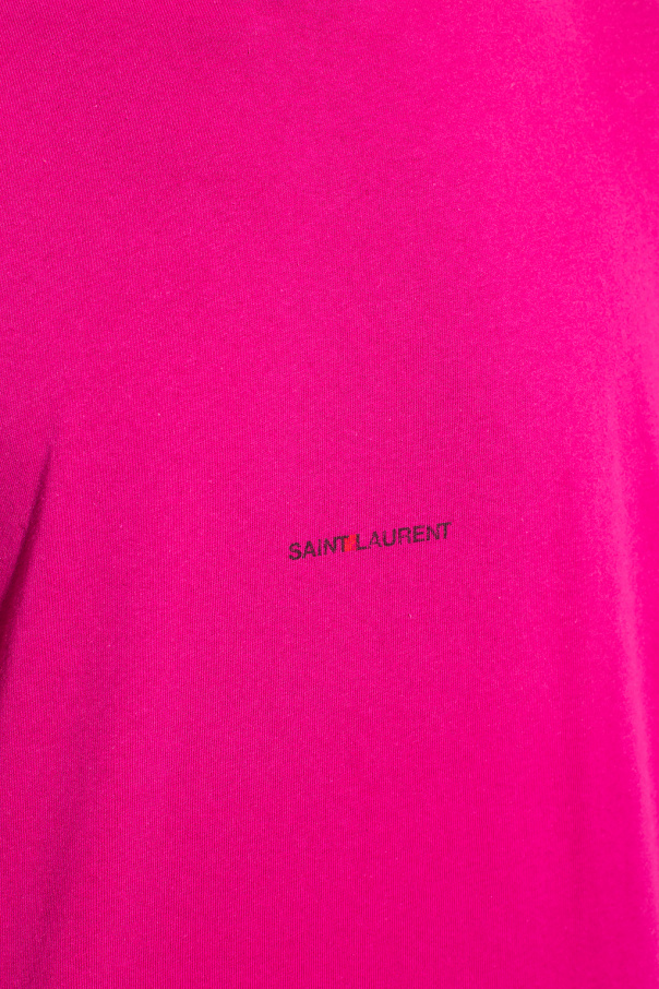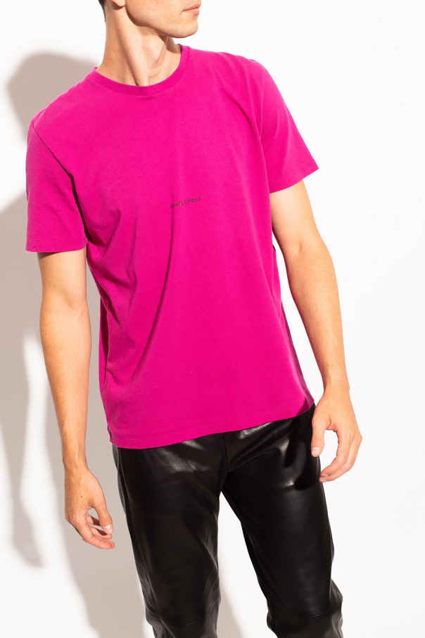 Dark pink crewneck T-shirt from Saint Laurent. Crafted from cotton, this style showcases a graphic print with the brand\'s logo.
