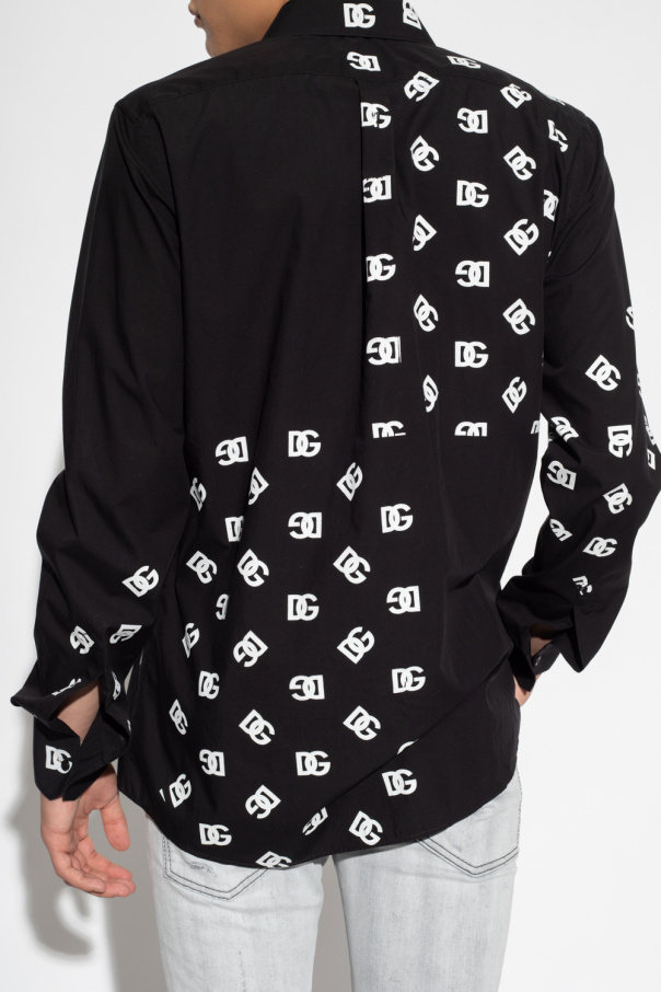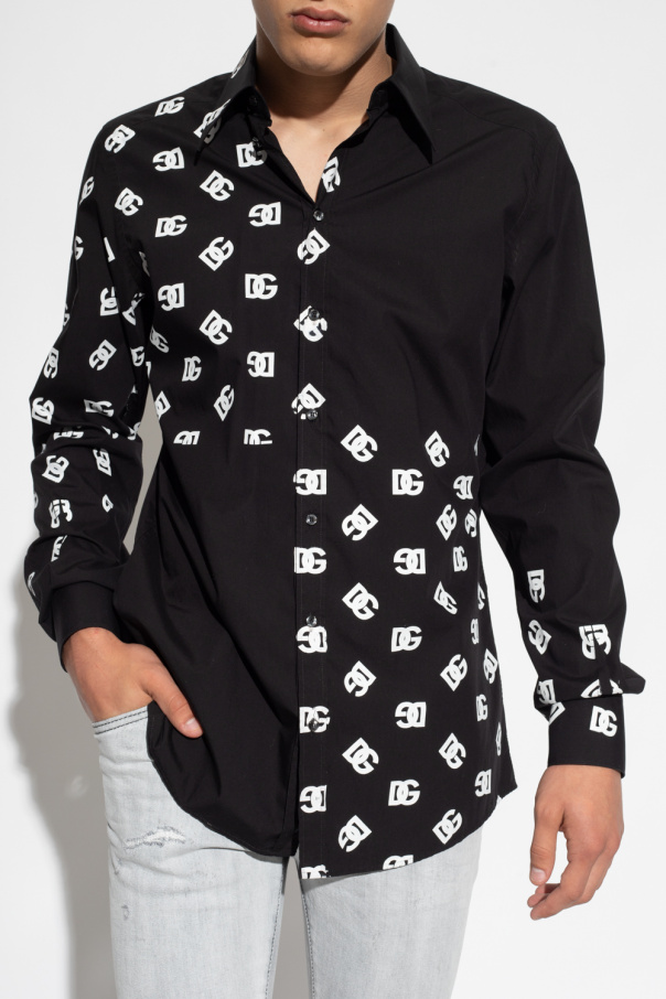Black shirt from Dolce & Gabbana. Made of cotton, this garment features button fastenings, white logo print and long sleeves with buttoned cuffs.
