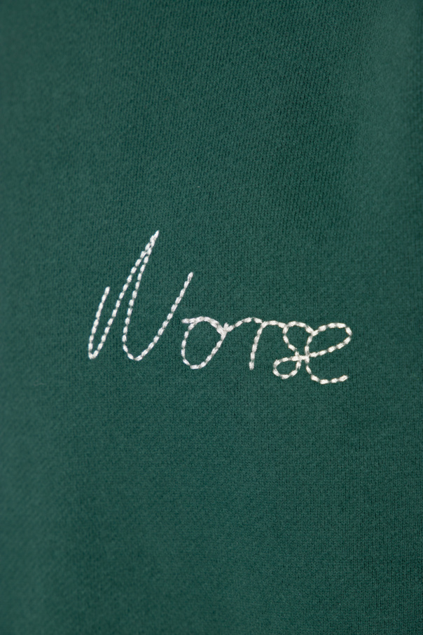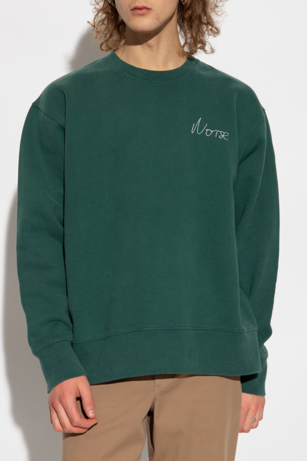 Green ‘Arne’ crewneck sweatshirt from Norse Projects. Crafted from organic cotton, this long sleeve design features a white logo embroidery and ribbed edges.
