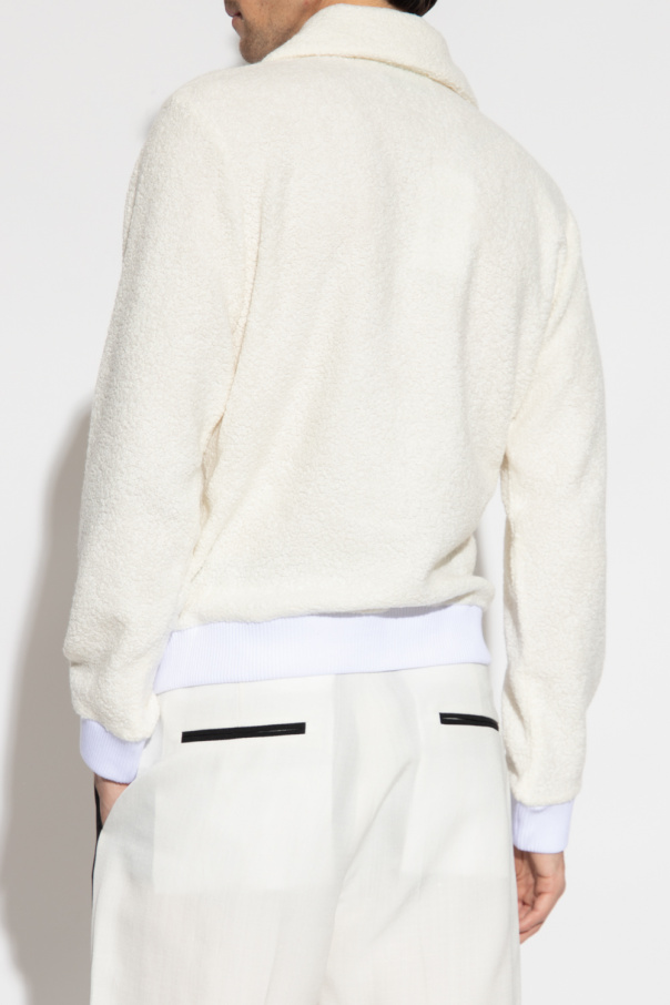 Cream sweatshirt from Casablanca. Crafted from textured fabric, this design features a zip fastening, navy logo embroidery, two snap-fastened flap pockets and ribbed trims at the hem and cuffs.