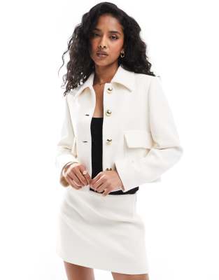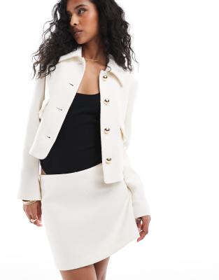 Mango button detail tailored jacket and skirt co-ord set in white