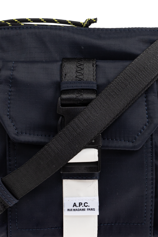 Introducing the Trek Shoulder Bag by the illustrious A.P.C., an exemplar of refined urban elegance. Crafted from resilient nylon, this bag boasts a sleek rectangular silhouette, enveloped in a rich navy hue that exudes sophistication. The bag features a flap closure with a buckle and a zippered seal, ensuring your belongings remain secure. An additional front pocket with a flap and a chic carabiner add a layer of practical allure. The iconic A.P.C. logo is proudly displayed on a white label inscribed with \"RUE MADAME PARIS,\" enhancing its prestigious aesthetic. Designed for comfort, the adjustable black shoulder strap offers a customizable fit for every gentleman. Inside, the bag reveals a spacious interior with a zippered compartment, while the back hosts a discreet label for personal information. Why Choose This Product? Timeless Design: A classic aesthetic that transcends trends. Exceptional Craftsmanship: Made with high-quality nylon for durability. Functional Features: Secure closures and ample storage options. Renowned Brand: A.P.C., a symbol of luxury and understated elegance.