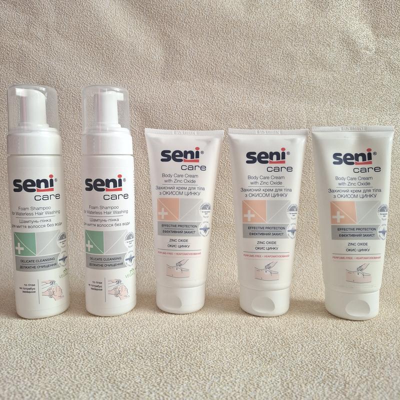 * Шампунь-пінка для миття волосся і шкіри голови без води SENI CARE 200 мл., ціна по 120 грн/1од. в наявності 4 одиниці.