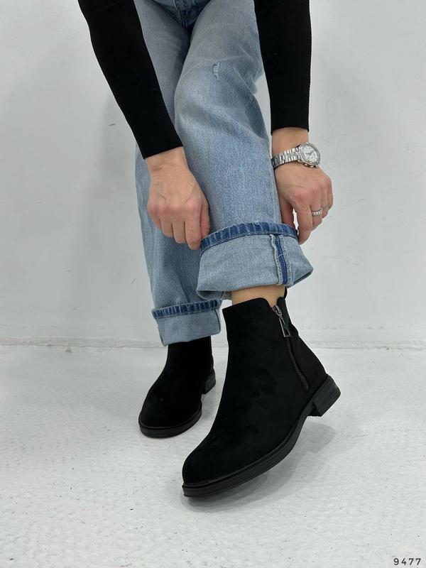 ботинки женские черные, эко-замша, внутри флис, каблук 2 см, размер в размер
