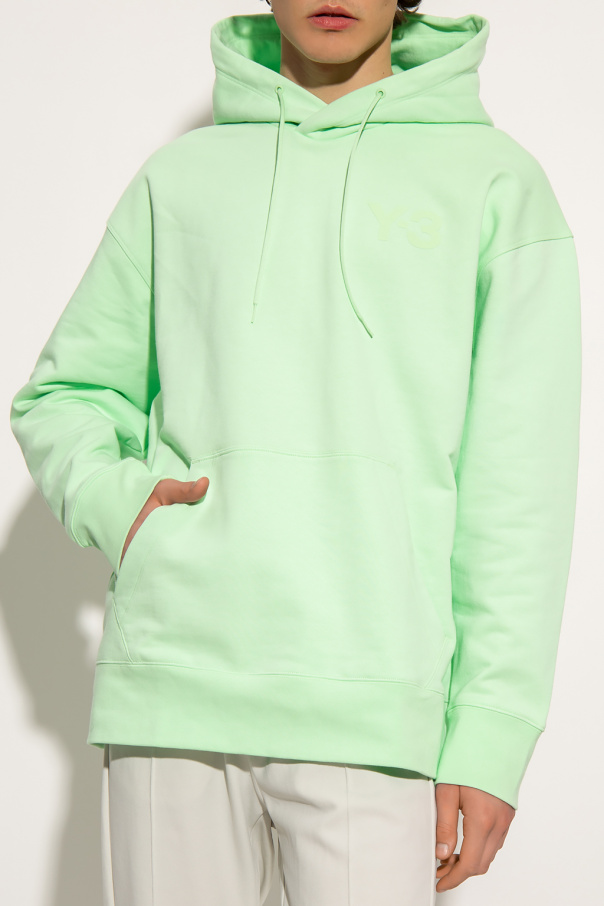 Light green sweatshirt from Y-3 Yohji Yamamoto. Crafted from cotton, this garment features a drawstring hood, light green logo, two front pockets and ribbed trims.