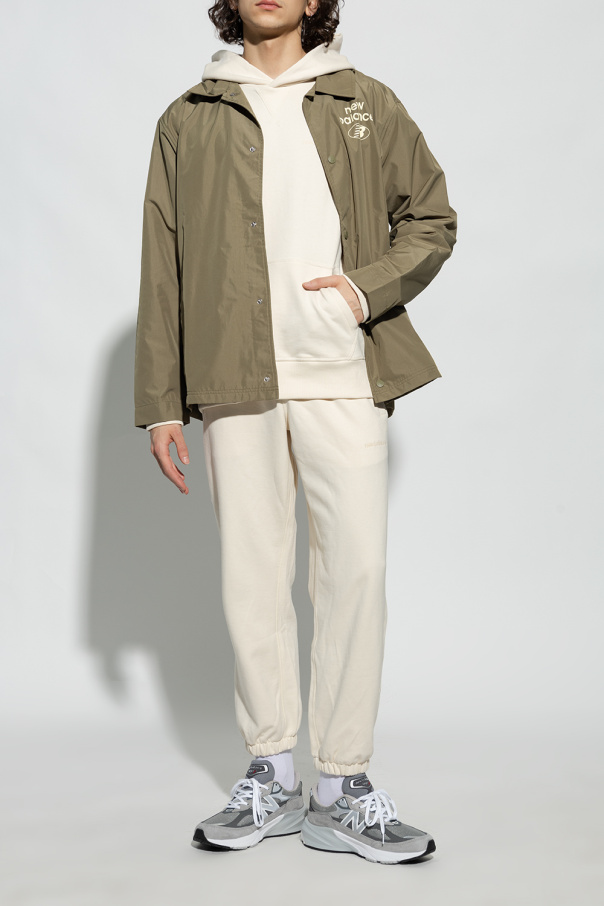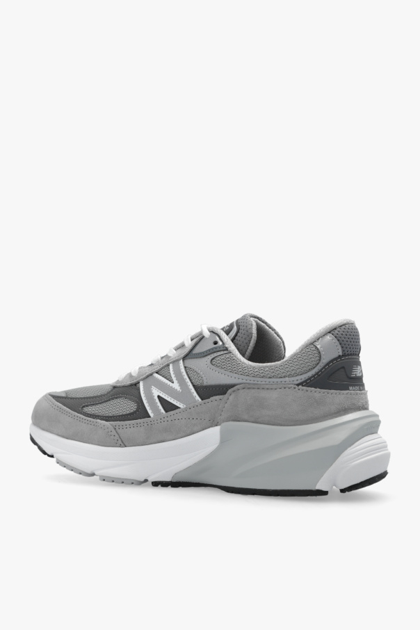 Grey and white ‘M990GL6’ sneakers from New Balance. Crafted from leather and fabric overlays, this lace-up model sits on a white and grey rubber sole and showcases a logo application and model\'s symbol.